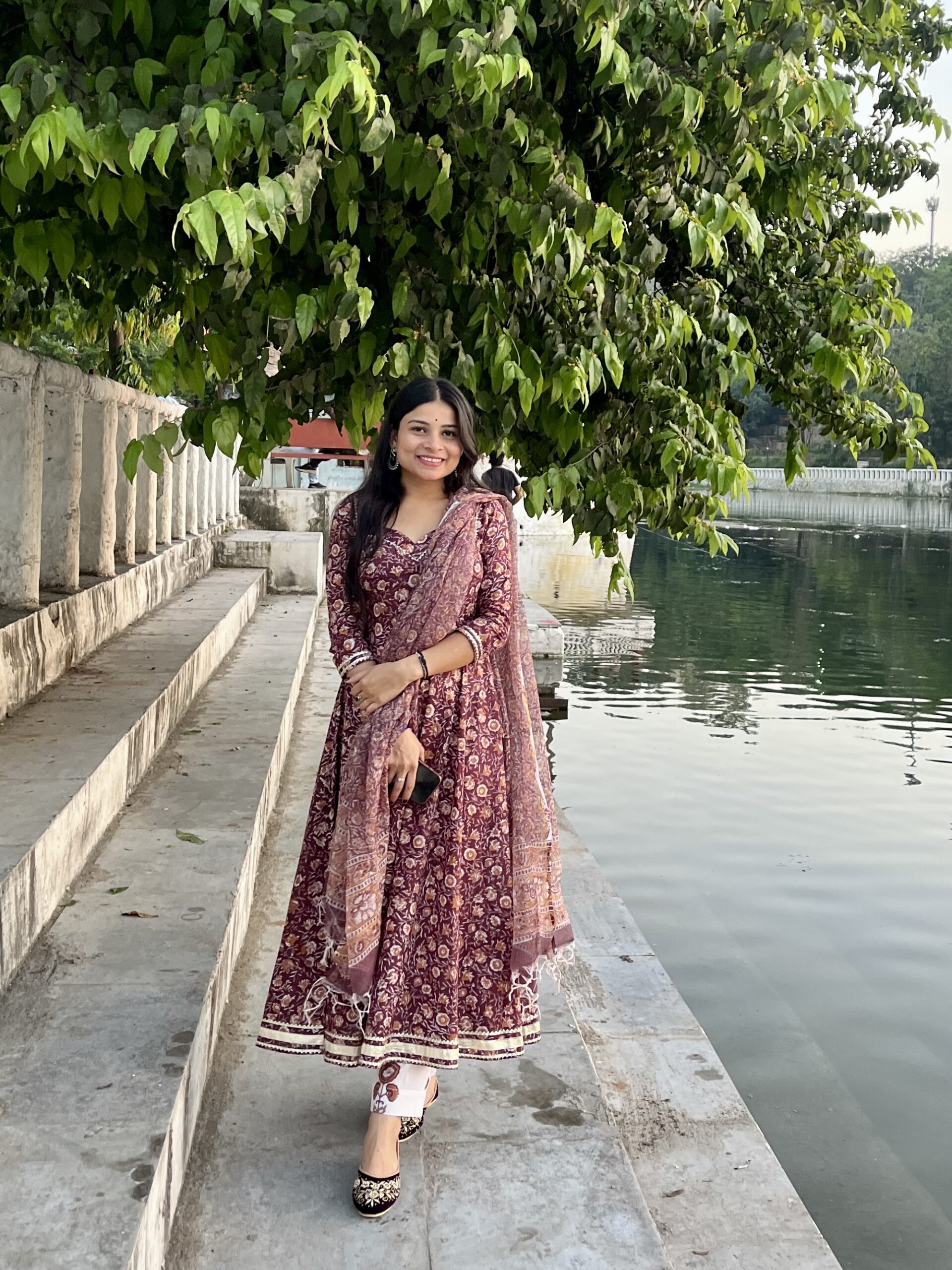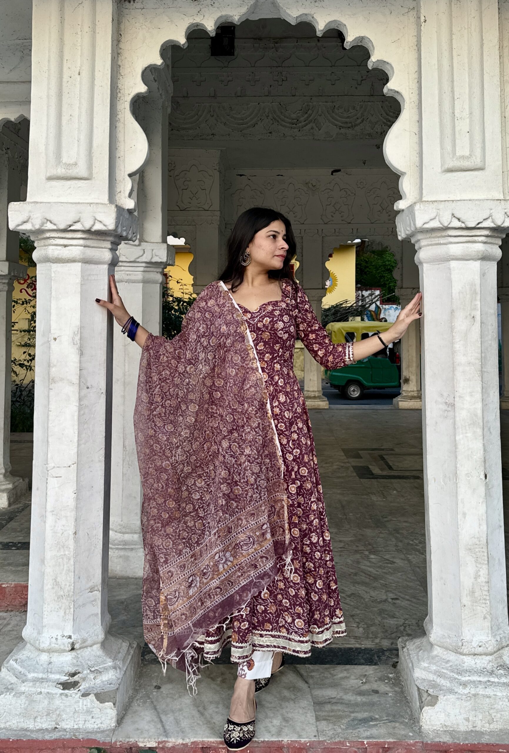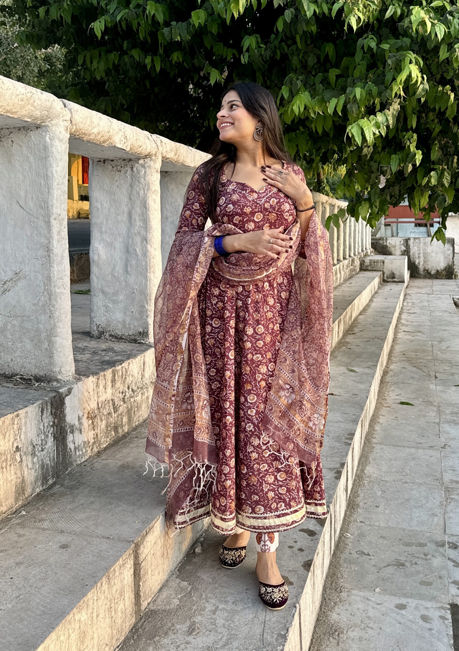 Handblock printed pure cotton floral Anarkali suit with gota details it comes with kota doriya dupta
